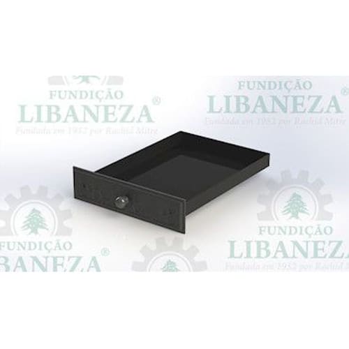 Gaveta cinzeiro com a frente em ferro fundido e a gaveta em aço carbono.