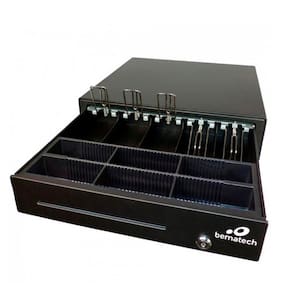 Gaveta para Dinheiro Bematech Elgin GD 56, cor preta, acionamento automático e chave Marca: Bematech e Elgin Modelo: GD56 Modelo desenvolvido em aço, que suporta perfeitamente o peso do computador e monitor, além do alto volume de vendas diário. A gaveta mais confiável do mercado possui abertura horizontal e pode ser acionada tanto pela impressora quanto manualmente. ESPECIFICAÇÕES TÉCNICAS:Mateial: fabricada em poliestireno de alto impacto (HIPS) Prendedores de notas em aço carbono niquelado e com molas Cor: Preta Nichos: 5 para Cédulas e 6 para Moedas Dimensões: Dimensões do porta moedas e cédulas: 368 x 57 x 332 mm - Largura x Altura x Profundidade / Dimensões da embalagem: 407 x 113 x 406 mm - Largura x Altura x Profundidade Peso Bruto: 1,8Kg Acessório (opcional): Tampa para porta moedas e cédulas GD-56 Material: Aço galvanizado, laminado a frio Fechadura: com trava aberto/fechado e 2 chaves Dimensões do Produto: 410 x 115 x 415 mm - Largura x Altura x Profundidade Dimensões da Embalagem: 470 x 150 x 470 mm - Largura x Altura x Profundidade Peso Bruto: 1,3Kg Tipo de Abertura: Frontal Conector: Padrão RJ12 Sensor de Status de Gaveta: Aberta / FechadaPorta moedas e cédulas (Acompanha a Gaveta): Removível. Fabricada em poliestireno de alto impacto (HIPS) / Nichos: 5 para Cédulas e 6 para Moedas, Prendedores de notas em aço carbono niquelado e com molas / Dimensões: 368 x 57 x 332 mm - Largura x Altura x Profundidade Dimensões da Gaveta: Largura : 410 mm, Altura : 100 mm (sem os pés), Profundidade : 415 mm (gaveta fechada) e 710 mm (com a gaveta aberta) Fechadura: 3 Posições: Aberta, Fechada e Abertura Manual através de Solenoide de 24V Peso Líquido: 6,6 Kg