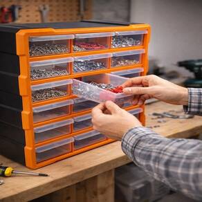 Gaveteiro 18 Gavetas Profissional Maleta Caixa Organizadora Mesa Parede Estante 36 Divisorias Mecanica Multiuso Gaveteiro Multiuso Kangur: Organização e Praticidade em um Só Produto!Mantenha seus pequenos objetos sempre organizados e de fácil acesso com o Gaveteiro 18 Gavetas com 36 Divisórias da Kangur. Ideal para mesas e paredes, este organizador multiuso é perfeito para qualquer ambiente, desde escritórios até oficinas.Principais Características: Organizador Multiuso: Perfeito para guardar e organizar pequenos objetos como ferramentas, materiais de escritório, peças de artesanato e muito mais.