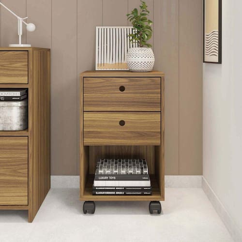 O Gaveteiro Maceió com duas gavetas e um nicho com rodízios é um tipo de móvel extremamente versátil e funcional que pode ser utilizado em vários ambientes, como escritórios, home offices, quartos, salas de estar e até mesmo cozinhas. Afinal, ele possui um espaçamento ideal para armazenar os seus objetos, além de possuir 4 rodízio, o que facilita no transporte e liberdade de posicionamento na sua decoração. Acabamento da Gaveta: BP Acabamento da Prateleira: BP Ambiente Principal: Escritório Complexidade da Montagem: Baixa: pode ser montado por uma pessoa sozinha Cor: Mel Cor do Produto: Mel Cor Flex: Não Cor Interna: Lamina Mel Escala de Brilho: Fosco Escala de Brilho da Gaveta: Fosco Escala de Brilho da Prateleira: Fosco Gaveta com Chave: Não Itens Inclusos: 1 Gaveteiro, Kit ferragens e Manual de Montagem Manual de Montagem e Instalação: https://product-hub-prd.madeiramadeira.com.br/865933/documents/0ba1b5cc-9d3e-4ed1-ba53-ad146fcae72176251eqgaveteiroskyediCAoa.pdf Material da Gaveta: MDP Material da Prateleira: MDP Material do Puxador da Gaveta: ABS Material Principal: MDP Montagem Flex: Não Necessita Montagem: Sim Origem do Produto: Nacional Peso: 12,2 kg Peso Máximo por Gaveta: 2 kg Peso Máximo por Prateleira: 5 kg Possui Portas: Não Possui Prateleiras: 01 Recomendações de Uso, Manutenção e Limpeza: Limpar com pano macio levemente umedecido e em seguida pano macio seco. Não utilizar produtos abrasivos (lixas, esponjas) e/ou produtos a base de solventes (thinner, aguarrás). Rodízio com Trava: Sim Sapatas Niveladoras: Não Sistema de Montagem: Utiliza-se na montagem do produto sistema de fixação minifix, dobradiças, dispositivos angulares, cavilhas, parafusos, porcas cilindricas, entre outros; Suporta Até (kg): 14 kg Tipo de Corrediça da Gaveta: Metálica Telescópica Tipo de Puxador da Gaveta: Externo Ean: 7909903392225