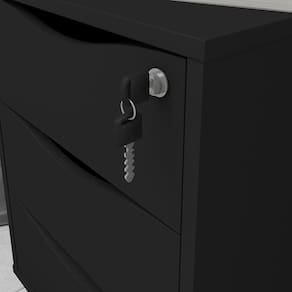 Possui três gavetas com corrediças metálicas, facilitando a organização de celulares, livros e cadernos, contando com chave para a primeira gaveta, trazendo e privacidade.