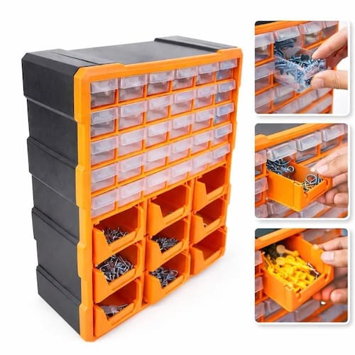 Ideal para armazenar parafusos, buchas, pregos, peças pequenas, acessórios e materiais diversos.