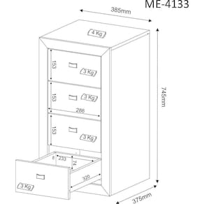 Características: Material: 100 MDP 15mm Revestimento: BP Gavetas: 4 Pés: 4 - Rodízios PVC Puxadores: 4 - PVC Cromado Corrediça: Metálica Fixação - Peças: Minifix, cavilha, parafusos Capacidade Topo: 4 kg Gavetas: 3 kg Montagem Reversível: Não possui Quantidade de volumes: 1 Conteúdo da embalagem: Produto, manual de montagem, kit de ferragem.