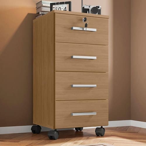 Gaveteiro Gávea, produto Versátil Compacto ideal para pequenos espaços, Pintura Textura, 4 Gavetas sendo 01 com Chave e com Rodízios para facilitar manuseio.