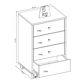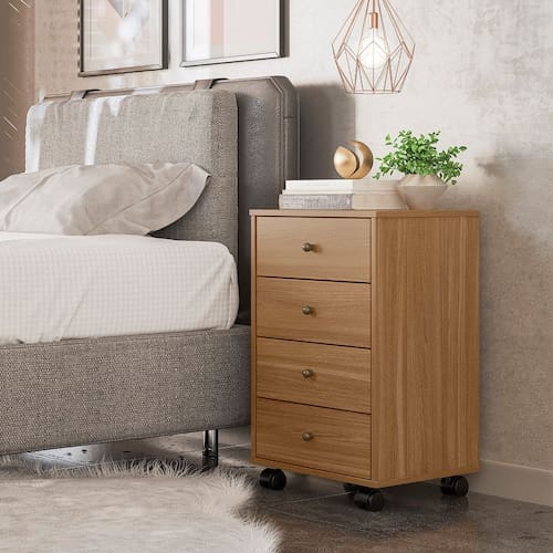 Características: Material em MDP 4 Gavetas 4 Rodízios Corrediças metálicas