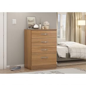 Compacta, ela conta com 4 gavetas, todas com corrediças metálicas telescópicas, sendo que a última é de maior profundidade e pode ser para guardar roupa de cama, toalhas ou caos dobrados
