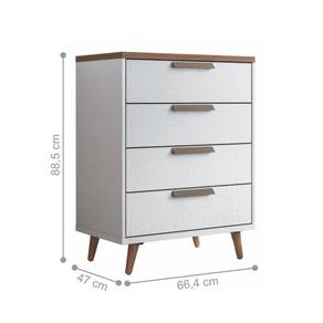 Suas 04 amplas gavetas deslizam sobre corrediças metálicas com suavidade para guardar suas roupas com muita organização.