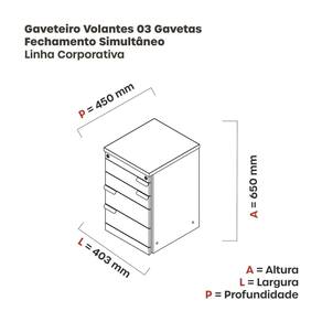 O Gaveteiro Aéreo 03 Gavetas Corporativo é um móvel prático e funcional que ajuda a organizar seu espaço de trabalho. Ele é suspenso, o que otimiza o espaço na mesa e facilita o acesso aos seus materiais. As duas gavetas são espaçosas e possuem travamento simultâneo, garantindo a segurança dos seus pertences. Acabamento da Gaveta: Melamínico Ambiente Principal: Escritório Complexidade da Montagem: Média: pode ser montado por mais de uma pessoa e/ou necessite de maior conhecimento para montagem Cor: Cinza Cor do Produto: Cinza Cor Interna: Cinza Escala de Brilho: Semi-Fosco Escala de Brilho da Gaveta: Semi-Fosco Gaveta com Chave: 01 Itens Inclusos: Um Gaveteiro Linha ou Coleção: Corporativa Manual de Montagem e Instalação: https://product-hub-prd.madeiramadeira.com.br/910605/documents/b0f8976e-0f17-4293-8852-bfc948dd756a1983837387017168184086871.pdf Material da Gaveta: MDP Material do Puxador da Gaveta: MDP Material Principal: MDP Necessita Montagem: Sim Origem do Produto: Nacional Peso: 17,636 kg Peso Máximo por Gaveta: 15 kg Possui Portas: Não Possui Prateleiras: Não Recomendações de Uso, Manutenção e Limpeza: Limpeza deve ser feita com um pano levemente umedecido e um pano seco. Sapatas Niveladoras: Não Sistema de Montagem: Parafuso Suporta Até (kg): 20 kg Tipo de Corrediça da Gaveta: Metálica Telescópica Tipo de Puxador da Gaveta: Externo