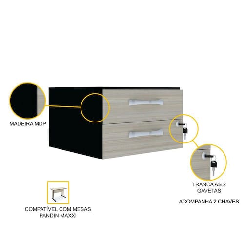 - Gaveteiro aéreo ideal para ser instalado embaixo de mesas da linha Maxxi Pandin.