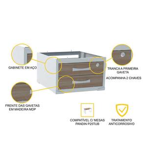 - Gaveteiro aéreo ideal para ser instalado embaixo de mesas da linha P25TUB da Pandin.