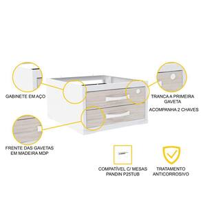 - Gaveteiro aéreo ideal para ser instalado embaixo de mesas da linha P25TUB da Pandin.