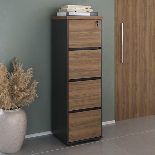 Gaveteiro Alto Arquivo para Pasta Suspensa com Chave, para Escrirório e Recepção Nogal/Preto
