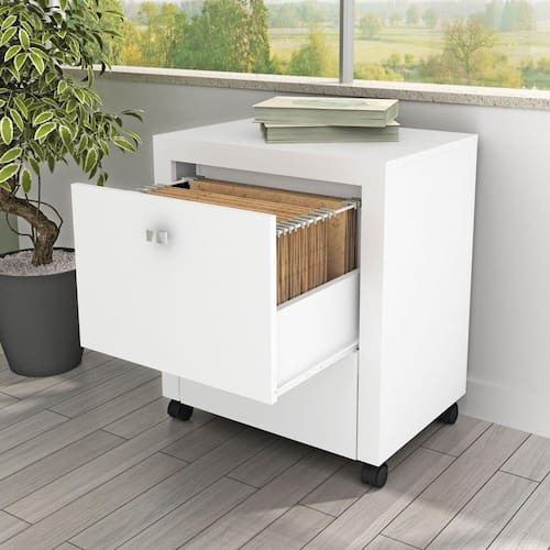 O(a) Gaveteiro Arquivo com Rodízios 2 Gavetas Me4112 Branco - Tecno Mobili  é produzido em MDP na escala de brilho Fosco, e possui um grau de dificuldade de montagem: Médio.