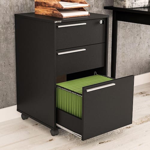 O(a) Gaveteiro Arquivo com Rodízios Maia 3 Gavetas com Chave Preto - Politorno é produzido em MDP na escala de brilho Fosco, e possui um grau de dificuldade de montagem: Médio.