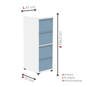Produto confeccionado em chapa de aço 26 e 24, destinado a utilização de armazenamento de documentos por meio de pastas suspensas, com visual moderno possibilitando uma harmonia em seu ambiente de trabalho. Acabamento da Gaveta: Pintura Ambiente Principal: Escritório codigo_ean: 7900288075345 Complexidade da Montagem: Média: pode ser montado por mais de uma pessoa e/ou necessite de maior conhecimento para montagem Cor: Branco/Azul Dali Cor do Produto: Branco/Azul Dali Cor Flex: Não Cor Interna: Branco/Azul dali Escala de Brilho: Semi-Fosco Escala de Brilho da Gaveta: Semi-Fosco Gaveta com Chave: 01 Informações Complementares: Utilizar um pano levemente umedecido com água, para finalizar utilizar um pano seco. Itens Inclusos: 1 Gaveteiro + 1 Kit Ferragens + 1 Manual de Montagem Linha ou Coleção: OF04SLTCM Manual de Montagem e Instalação: https://product-hub-prd.madeiramadeira.com.br/978781/documents/9be4f82e-67fe-4b22-9755-1f8106309d27ad198cdd3f86723711e9870011.pdf Marca: Pandin Móveis Material da Gaveta: Aço Material Principal: Aço Montagem Flex: Não Necessita Montagem: Sim Origem do Produto: Nacional Peso: 24,76 kg Peso Máximo por Gaveta: 25 kg Possui Acabamento na Parte de Trás: Não Possui Gaveta para Pasta Suspensa: Não Possui Portas: Não Possui Prateleiras: Não Recomendações de Uso, Manutenção e Limpeza: Utilizar um pano levemente umedecido com água, para finalizar utilizar um pano seco. Sapatas Niveladoras: Sim Sistema de Montagem: Encaixe Suporta Até (kg): 100 kg Tipo de Corrediça da Gaveta: Metálica Telescópica Tipo de Puxador da Gaveta: Embutido
