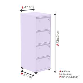 Produto confeccionado em chapa de aço 26 e 24, destinado a utilização de armazenamento de documentos por meio de pastas suspensas, com visual moderno possibilitando uma harmonia em seu ambiente de trabalho. Acabamento da Gaveta: Pintura Ambiente Principal: Escritório codigo_ean: 7900288072320 Complexidade da Montagem: Média: pode ser montado por mais de uma pessoa e/ou necessite de maior conhecimento para montagem Cor: Lilás Cor do Produto: Lilás Cor Flex: Não Cor Interna: Lilás Escala de Brilho: Semi-Fosco Escala de Brilho da Gaveta: Semi-Fosco Gaveta com Chave: 01 Informações Complementares: Utilizar um pano levemente umedecido com água, para finalizar utilizar um pano seco. Itens Inclusos: 1 Gaveteiro, 1 Kit Ferragens e 1 Manual de Montagem Linha ou Coleção: OF04SLTCM Manual de Montagem e Instalação: https://product-hub-prd.madeiramadeira.com.br/978765/documents/64ba2683-308e-4808-86d3-bcb4b805bf1bad198cdd3f86723711e9870011.pdf Marca: Pandin Móveis Material da Gaveta: Aço Material Principal: Aço Montagem Flex: Não Necessita Montagem: Sim Origem do Produto: Nacional Peso: 24,76 kg Peso Máximo por Gaveta: 25 kg Possui Acabamento na Parte de Trás: Não Possui Gaveta para Pasta Suspensa: Não Possui Portas: Não Possui Prateleiras: Não Recomendações de Uso, Manutenção e Limpeza: Utilizar um pano levemente umedecido com água, para finalizar utilizar um pano seco. Sapatas Niveladoras: Sim Sistema de Montagem: Encaixe Suporta Até (kg): 100 kg Tipo de Corrediça da Gaveta: Metálica Telescópica Tipo de Puxador da Gaveta: Embutido