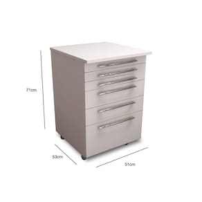 DEKI Linha Premium- Gaveteiro Auxiliar com 5 Gavetas + Bandeja RemovívelSe você busca organização, praticidade e qualidade o Gaveteiro Auxiliar Premium é a escolha certa! Fabricado em MDP da mais alta qualidade que garante sua durabilidade e resistência por um tempo muito maior. Confira toda nossa linha de produtos em nosso perfil.Nossos móveis são á Pronta Entrega e são ENVIADOS MONTADOS, prontos para uso!;Acompanha bandeja divisória para organização;Nossos móveis são fabricados em observância as normas da ANVISA;Fácil limpeza e desinfeção;Medidas: Largura 53cm x Altura 76cm x Profundidade 51cm;Puxadores em LIGA Importada;Material 100% em MDF Branco;CORREDIÇAS TELESCÓPICAS, garantindo leveza no abrir e fechar das gavetas;Tradição desde 1986.?Imagens meramente ilustrativas?ATENÇÃO A PRIMEIRA GAVETA NÃO ABRE, É FIXA, SERVE APENAS PARA MOVIMENTAR O GAVETEIRO.
