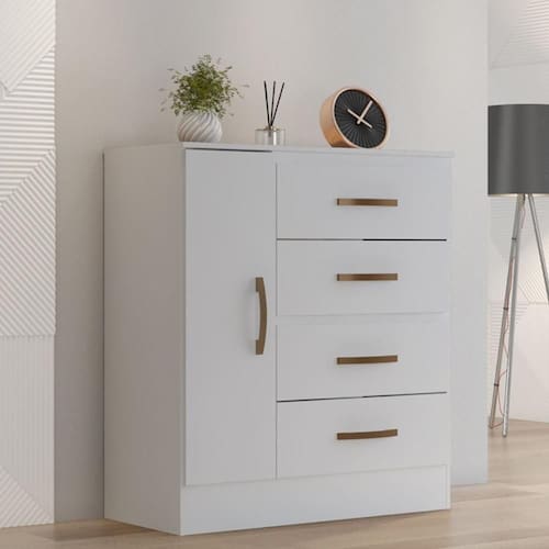 Praticidade e elegante em um único móvel! Esta cômoda de 4 gavetas e 1 porta oferece amplo espaço para organização, mantendo seu ambiente moderno e funcional. Perfeita para qualquer conforto da sua casa!