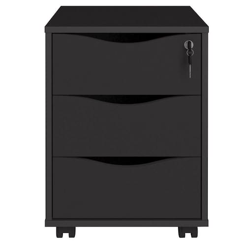 Gaveteiro com Chave Face Preto - Gaveteiro com 3 gavetas e rodinhas.