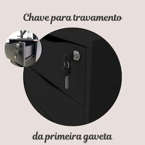 - Quantidade de gavetas: 3 gavetas, sendo 1 com chave.