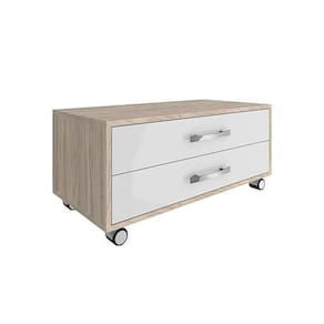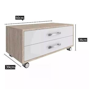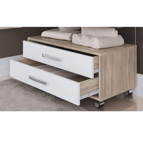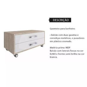Gaveteiro balcão com 2 gavetas, em MDP. Acompanha rodinhas e puxadores.