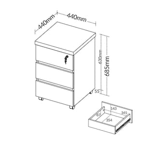 Ele acompanha chave para travamento da gaveta superior, e rodízios que garantem maior praticidade. É versátil, pois possui traseira revestida, permitindo o uso em qualquer posição.