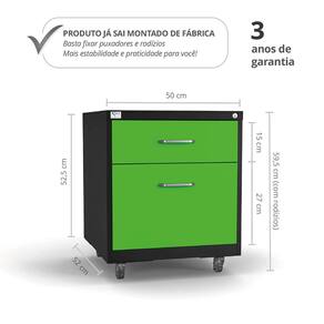 Dimensões do produto (com rodízios): 59,5 cm x 50 cm x 52 cm. Acabamento da Gaveta: Pintura Ambiente Principal: Escritório codigo_ean: 7900288318473 Complexidade da Montagem: Baixa: pode ser montado por uma pessoa sozinha Cor: Verde/Preto Cor do Produto: Verde/Preto Escala de Brilho: Semi-Brilho Gaveta com Chave: 01 Itens Inclusos: 1 Gaveteiro, Kit Ferragens e Manual de Montagem Manual de Montagem e Instalação: https://product-hub-prd.madeiramadeira.com.br/955348406/documents/9f5d6ba9-2f86-4dcc-ab3d-ba1716ca6074c3101829647517537919225441.pdf Marca: Isma Material da Gaveta: Aço Material Principal: Aço Necessita Montagem: Sim Origem do Produto: Nacional Peso: 12,1 kg Peso Máximo por Gaveta: 15 kg Possui Acabamento na Parte de Trás: Sim Possui Gaveta para Pasta Suspensa: Sim Possui Portas: Não Possui Prateleiras: Não Recomendações de Uso, Manutenção e Limpeza: Limpar apenas com pano macio e levemente umedecido. Em seguida, utilizar um pano macio e seco. Rodízio com Trava: Sim Sapatas Niveladoras: Não Sistema de Montagem: Parafusos Suporta Até (kg): 15 kg Tipo de Corrediça da Gaveta: Plástica Tipo de Puxador da Gaveta: Externo Marca: Não Informado