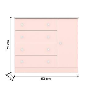 A cômoda é feita em MDP 15/12mm, possuindo quatro gavetas com corrediças metálicas.