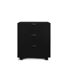 Gaveteiro Para Escritório 3 Gavetas Com Rodízio Mileto Preto Com Cobre Home Office Armário gaveteiro 3 gavetas rodinhas multiuso.É um móvel muito bonito e prático que facilita muito a limpeza devido possuir rodinhas.Móvel multi-uso para qualquer ambiente. banheiros, salas, quartos, lavanderias Produzido em estrutura reforçada, possui acabamento de alta qualidade que oferece durabilidade ao produto. Agora o ambiente dos seus sonhos está na palma da sua mão pelo precinho que cabe no seu bolsoEspecificações:Com corrediçasPuxadores em metal60cm comprimento40cm profundidade62,5cm altura total já com rodinhas Móvel enviado desmontado, fácil montagemCor: preto com cobreModelo: sublimeFabricante: e-ledMaterial: aço e mdp Peso suportado: até 60 kgGarantia: 3 meses de garantia