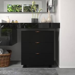 Gaveteiro Para Escritório 3 Gavetas Com Rodízio Mileto Preto Com Cobre Home Office Armário gaveteiro 3 gavetas rodinhas multiuso.