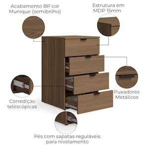 Gaveteiro para Escritório 4 gavetas Frame, ideal para ambientes corporativos que exigem organização e eficiência. Fabricado em MDP de 15 mm com acabamento BP (semibrilho), conta com 4 gavetas equipada com corrediças telescópicas e puxadores metálicos, que garantem abertura suave e total. Possui sapatas niveladoras para ajuste em diferentes tipos de piso, oferecendo estabilidade e durabilidade. Indicado para estações de trabalho amplas. Este móvel chegará em sua casa separado em 01 volume.