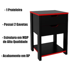 Gaveteiro Gamer para Escritório 2 Gavetas 1 Prateleira - Preto
