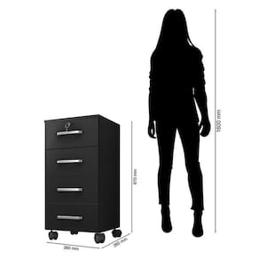 Gaveteiro Gávea com Chave 4 Gavetas Preto Fosco - Móveis Leão