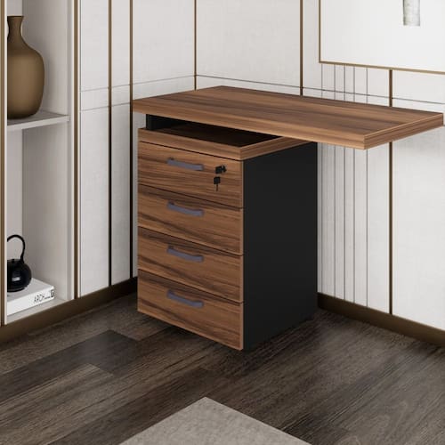umidade relativa do ar e/ ou dos substratos inicia a s Acabamento da Gaveta: BP Acabamento da Prateleira: BP Ambiente Principal: Escritório Complexidade da Montagem: Média: pode ser montado por mais de uma pessoa e/ou necessite de maior conhecimento para montagem Cor: Marrom/Preto Cor do Produto: Marrom/Preto Escala de Brilho: Fosco Escala de Brilho da Gaveta: Fosco Escala de Brilho da Prateleira: Fosco Gaveta com Chave: 01 Itens Inclusos: Um Gaveteiro Lateral Com Extensão 04 Gavetas Manual de Montagem e Instalação: https://product-hub-prd.madeiramadeira.com.br/908704/documents/8a09bd42-50d5-46d3-a646-4743891f137d1955676159817157942762457.pdf Material da Gaveta: MDP Material da Prateleira: MDP Material do Puxador da Gaveta: Poliestireno Material Principal: MDP Necessita Montagem: Sim Origem do Produto: Nacional Peso: 28,2 kg Peso Máximo por Gaveta: 10 kg Peso Máximo por Prateleira: 25 kg Possui Portas: Não Possui Prateleiras: 01 Recomendações de Uso, Manutenção e Limpeza: da-se que seja retirada toda a poeira coAntes de limpar recomenm um espanador ou flanela seca para evitar riscos na superfície, após utilize um pano umido em água, macio e limpo. Sapatas Niveladoras: Sim Sistema de Montagem: Parafusos e Cavilhas. Suporta Até (kg): 65 kg Tipo de Corrediça da Gaveta: Metálica Telescópica Tipo de Puxador da Gaveta: Externo