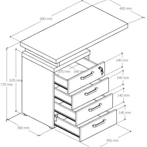 Gaveteiro Lateral com extensão gaveteiro 04 gavetas: Tampos confeccionados em chapa