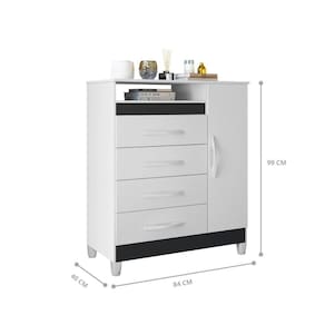 Dispõe de 4 gavetas, com profundidade excelente para acomodar todas as suas roupas.