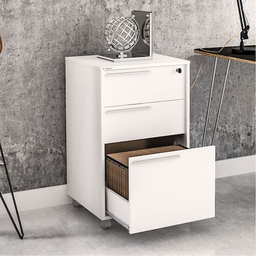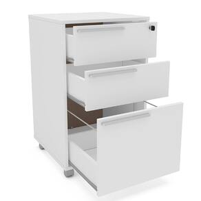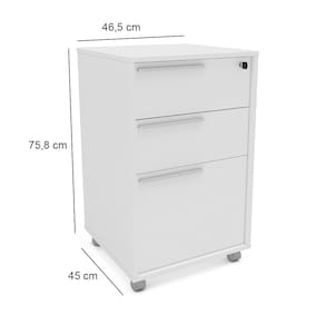 Características: Estrutura MDP Pintura UV 03 Gavetas com corrediças metálicas Puxadores em Plástico Peso suportado no Tampo: 10kg Peso suportado por Gaveta: 3kg