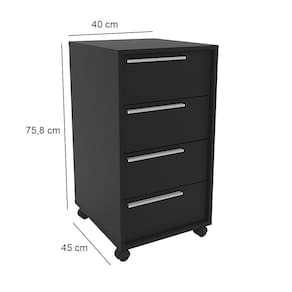 Características: Estrutura MDP/MDF Pintura UV 04 Gavetas com corrediças metálicas Puxadores em Plástico Acompanha 04 rodízios Peso suportado no Tampo: 10kg Peso suportado por Gaveta: 3kg