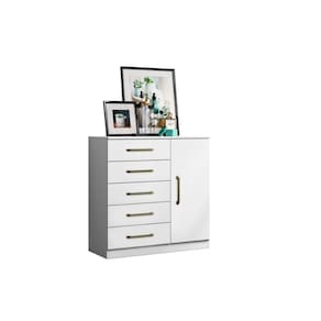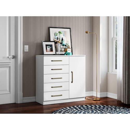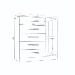 A Cômoda 5 Gavetas 1 Porta Milão Aramóveis, fabricada em MDP 15mm e 12mm de espessura. Seu espaçoso interior proporciona estabilidade ao móvel, enquanto os puxadores de plástico conferem resistência. Equipada com dobradiças metálicas, a cômoda oferece maior facilidade ao abrir e fechar as portas. O acabamento em verniz de alto brilho não apenas conserva o móvel, mas também proporciona uma estética contínua, garantindo beleza, resistência e prolongando a vida útil do produto.