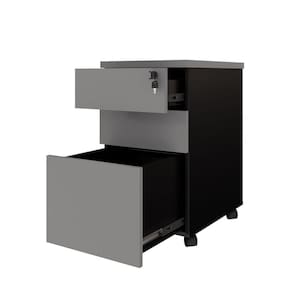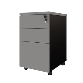 Gaveteiro Móvel Escritório 3 Gavetas e Chave com Rodízios e Puxadores Metálicos Corporate Cinza Sagrado/Preto