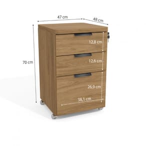 Gaveteiro Office Versátil com Chave 1003A da Kappesberg é excelente para ampliar a organização e manter o ambiente de trabalho elegante e confortável. Feito em mdp de excelente qualidade com rodinhas de metal garante mais praticidade. Possui 3 gavetas e 4 rodízios. Sendo uma ótima escolha para quem procura custo-benefício.Especificações Técnicas: Marca: KappesbergMatéria-prima: MDPQuantidade de gavetas: 03Corrediças: MetálicasPeso suportado por gaveta: 06 kgPuxadores: PolipropilenoCom Rodízios: SimSistema de montagem: Parafuso PhilipsProduto entregue em 01 volumeDimensões do Produto:Altura: 70 cmLargura: 47 cmProfundidade: 48 cmGarantia de 3 meses pelo Fabricante (Contra defeitos de Fabricação).