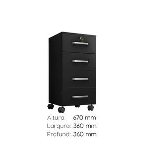 Gaveteiro Organizador Gávea Escritório Quarto Com Rodinhas - Preto