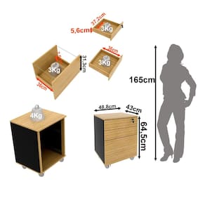 Características: Estrutura MDP Revestimento BP 3 Gavetas Corrediças telescópicas Rodízios Tampo suporta 4 kg e gaveta 3 kg