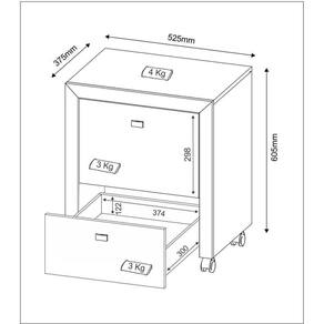Dimensões do produto montado: Altura: 60,5cm | Largura: 52,5cm | Profundidade: 37,5cm *Você pode consultar as medidas internas na imagem técnica do produto. *As cores do produto podem sofrer variações de tonalidade de acordo com as configurações do seu dispositivo.