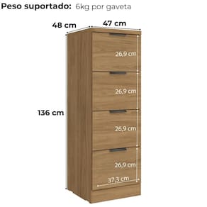 Gaveteiro Arquivo Office Versátil, solução funcional com design inteligente para escritórios modernos e ambientes corporativos. Estrutura em MDP (base 15 mm e tampo 30 mm) com acabamento em pintura BP. Conta com 04 gavetas, sendo uma delas no formato pasta suspensa para armazenamento seguro de documentos. Puxadores em polipropileno e sapatas niveladoras garantem funcionalidade e estabilidade no uso diário. Este produto chegará em sua casa separado em 1 volume.