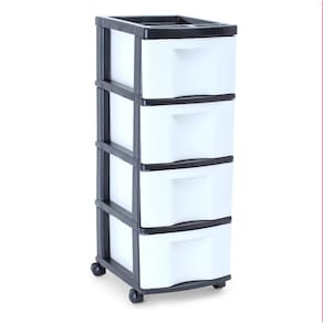 Gaveteiro plástico branco 4 gavetas grandes cod.752 agraplast estrutura preta e gavetas brancas 4 gavetas grandes brancas Estrutura preta 4 rodízios de plástico preto