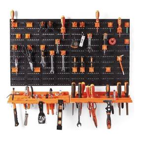 Organização Completa: Inclui 2 pegboards, 2 prateleiras e 50 ganchos variados, totalizando 52 peças para acomodar diferentes tipos de ferramentas e acessórios.