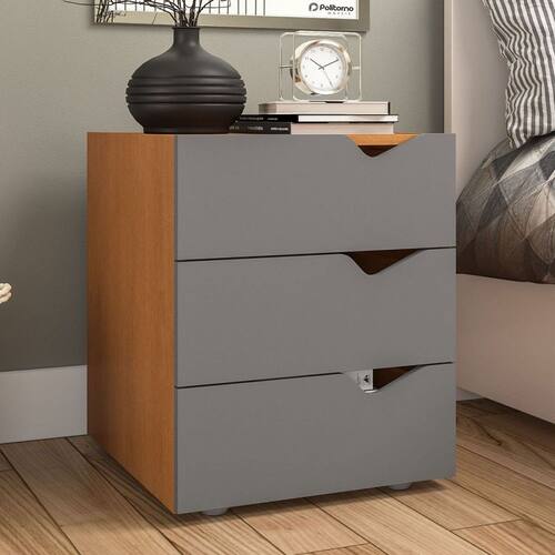 O(a) Gaveteiro Porto 3 Gavetas Cinza/Freijó - Politorno é produzido em MDP na escala de brilho Semi-Fosco, e possui um grau de dificuldade de montagem: Fácil.