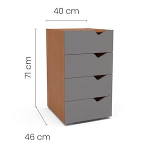 O(a) Gaveteiro Porto 4 Gavetas Porto Cinza/Freijó - Politorno é produzido em MDP na escala de brilho Semi-Fosco, e possui um grau de dificuldade de montagem: Fácil.