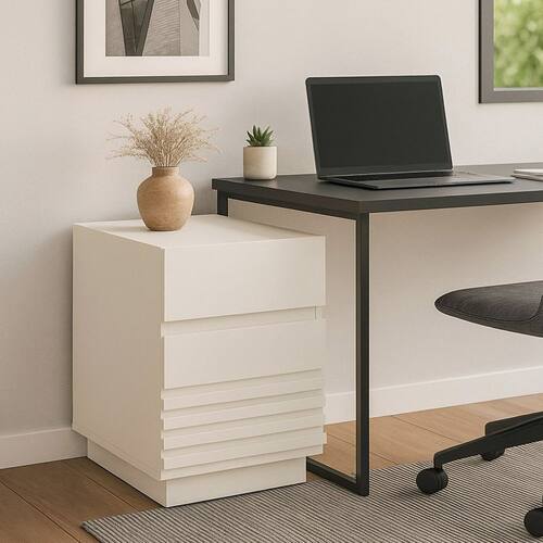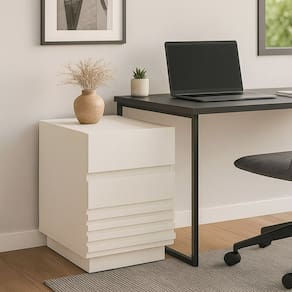 Fabricado em MDP de alta qualidade com detalhes ripados em MDF, o gaveteiro é um exemplo de como a combinação de materiais e acabamentos pode resultar em um visual moderno e atemporal. Os puxadores discretos com cavas e o acabamento texturizado reforçam sua elegância e versatilidade.